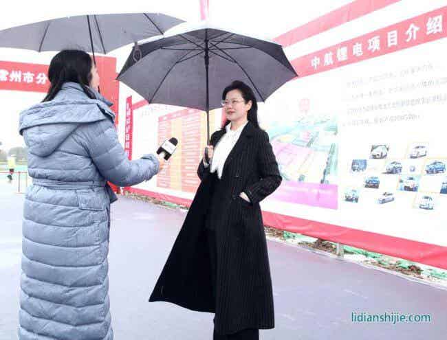 中航鋰電董事長劉靜瑜在開工現(xiàn)場講話。