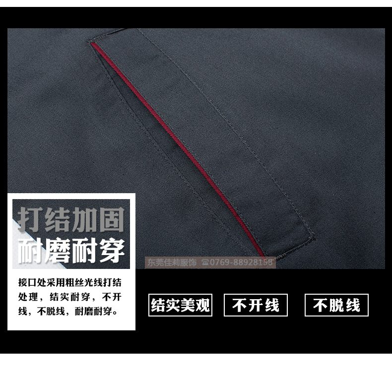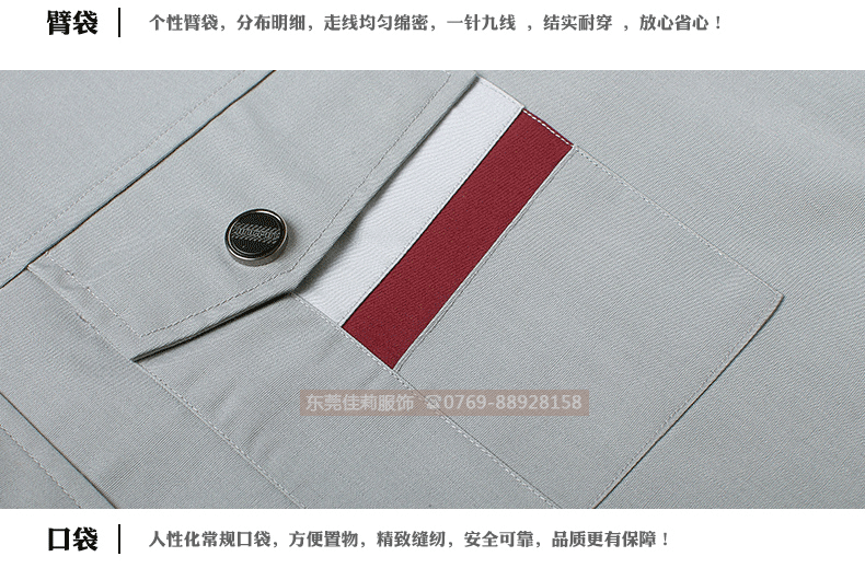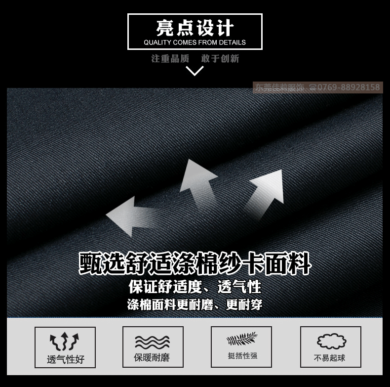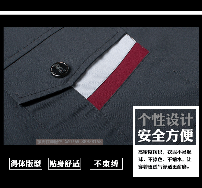 高品質全新形象,經(jīng)典設計,立體裁剪,時尚翻領,質感有型。走線細致,優(yōu)質暗扣,實用性強。胸前口袋撞色拼接,雙明線縫制既時尚又耐用,即使在下班之余也可以穿。