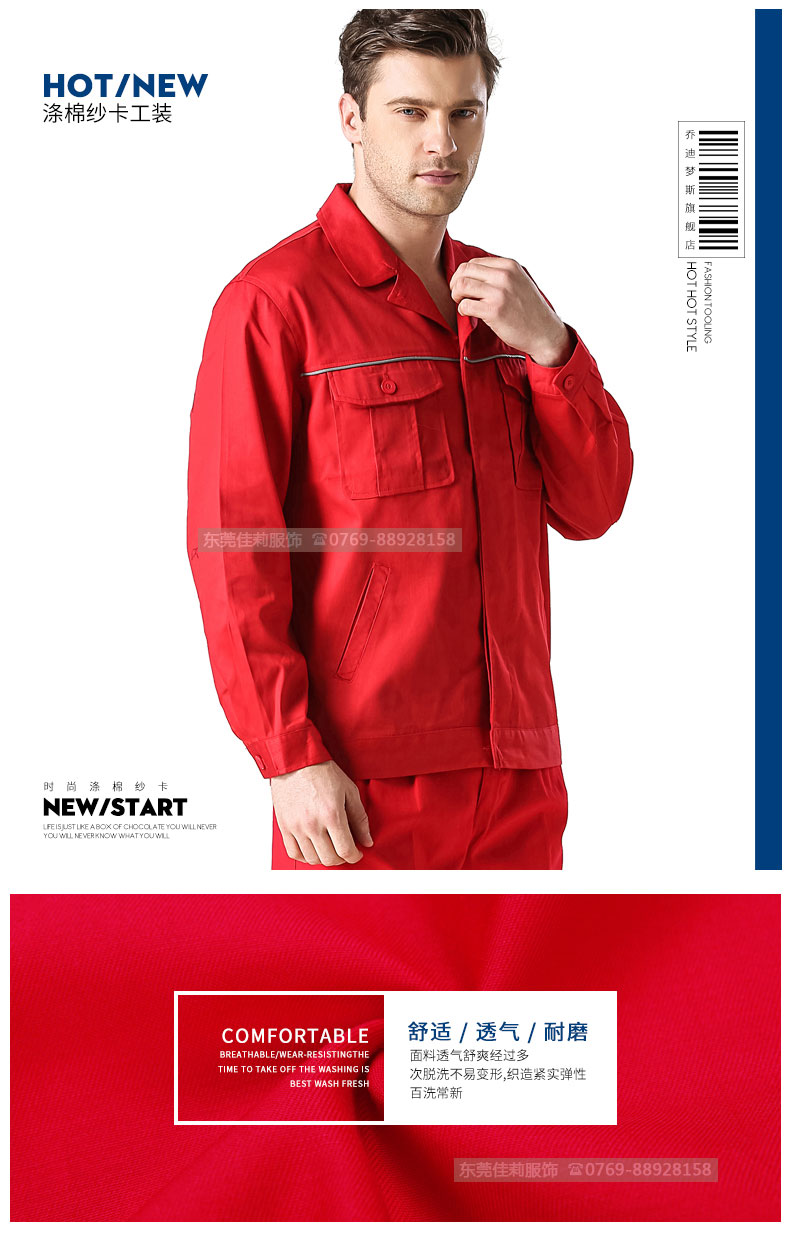 紅色電力工作服套裝 純棉工作服防靜電 JL-QD370