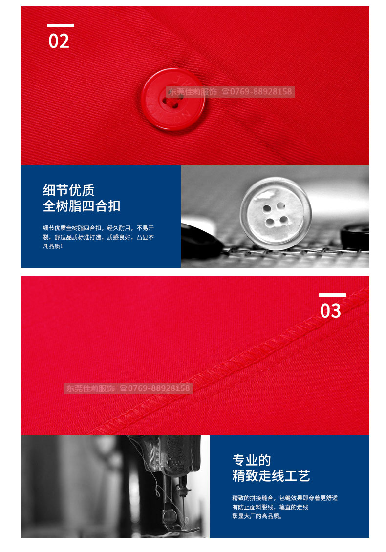 高品質全新形象,經典設計,立體裁剪,時尚翻領,質感有型。走線細致,優(yōu)質暗扣,實用性強。胸前口袋撞色拼接,雙明線縫制既時尚又耐用,即使在下班之余也可以穿。