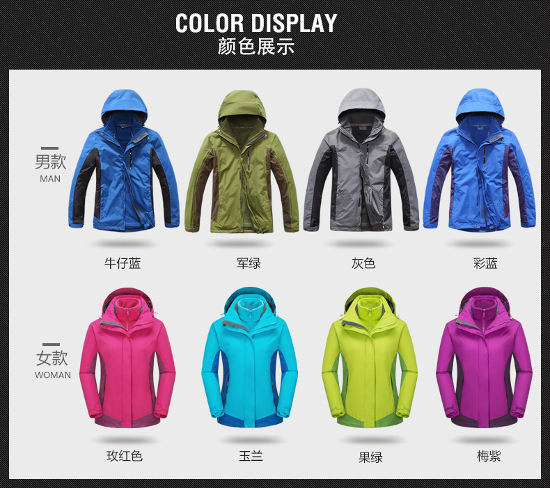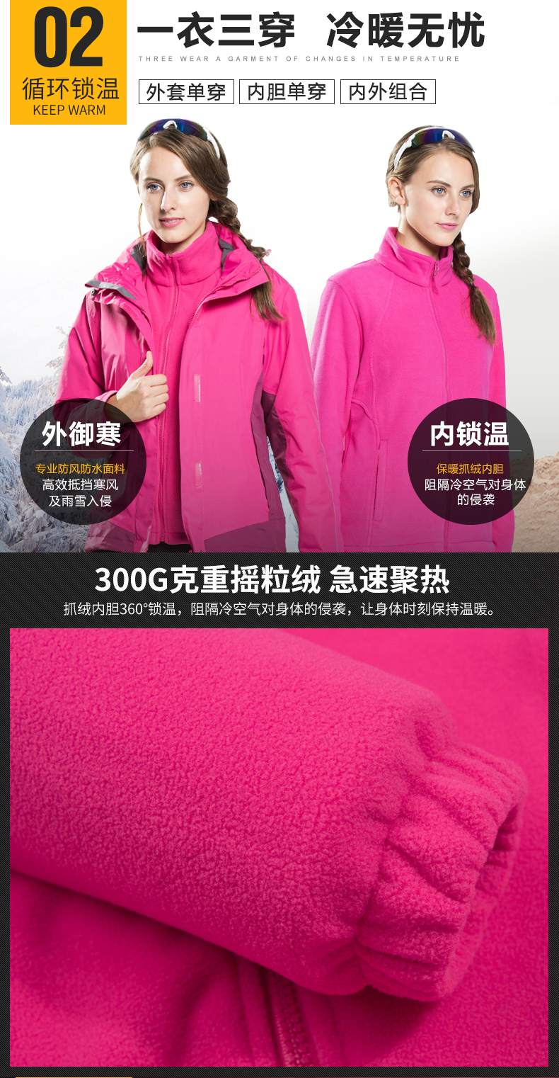 沖鋒衣定制三合一戶外 秋冬防水沖鋒衣套裝JL-566