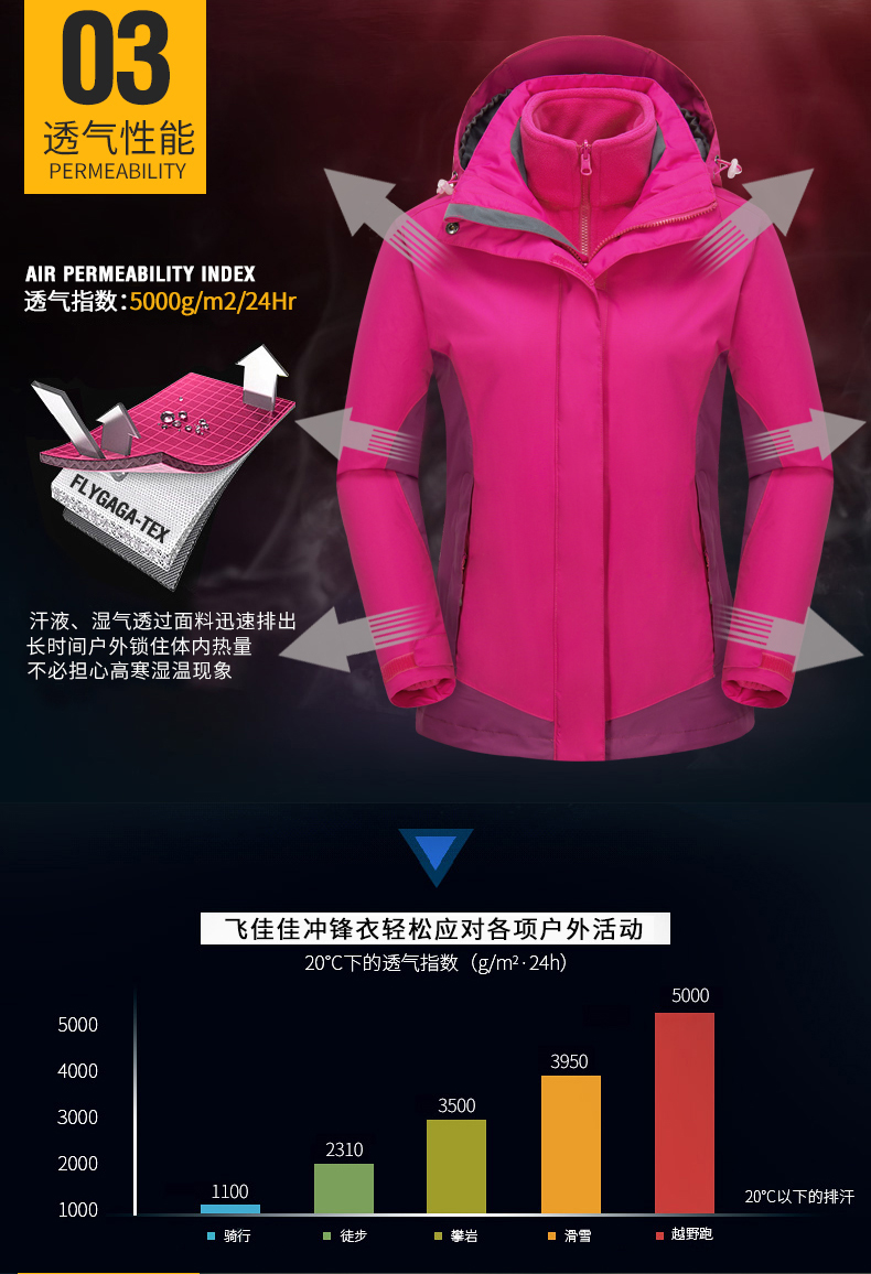防風防雨,鎖溫保暖,腋下透氣網洞,3合1沖鋒衣,內膽可拆卸