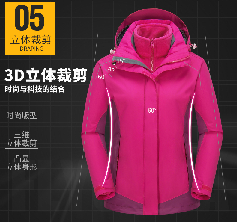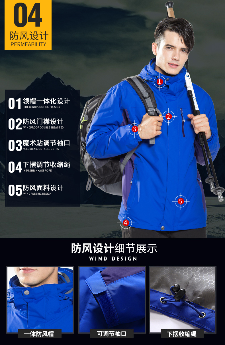 廠家直銷戶外服裝沖鋒衣三合一防水保暖工作服定制JL-570